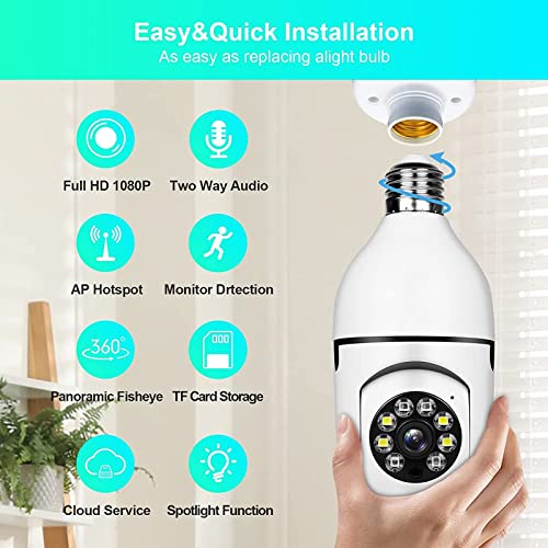 Lonnalee Caméra ampoule WiFi intérieure 360°,HD 1080P,Vision Nocturne Infrarouge Camera Surveillance pour Bébé/Animaux
