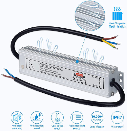 Transformateur 220v 12v Etanche 30w IP67 Extérieur